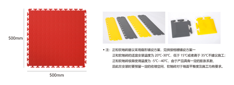 軟質絕緣地板能將每個獨立的地板快速拼裝成整體地面,專利型鎖扣結構連接能力更強,可承受叉車的來回碾壓。施工過程中無需膠黏劑等材質,具有施工簡單快速、色彩絢麗、美觀大方、可移動性強、可重復使用等特點。