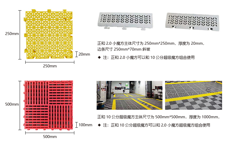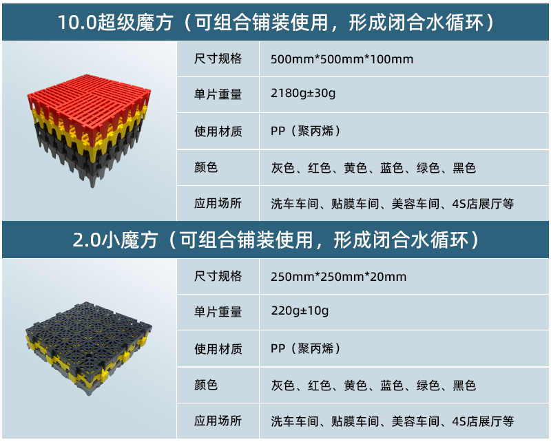 10公分終極魔方(50*50*10CM)與2.0小魔方(25*25*2CM)可組合鋪裝使用,形成閉合水循環(huán)